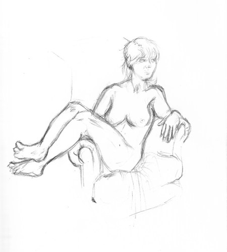 Returning to life drawing today I have to say my output was distinctly poor; I found myself lagging behind on the quicker poses with very few approaching anything near finished, the one above being the nearest to something complete. Ack.