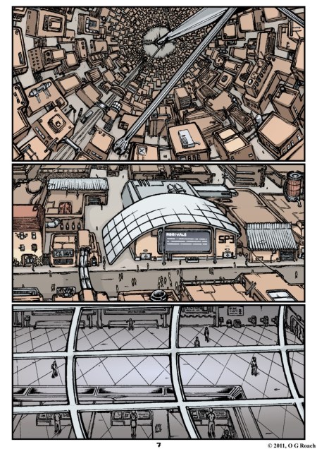 I say it’s odd because this is an uncommon viewpoint, likely to only occur maybe once or twice in the narrative while the rest of the action takes place within – as you may recall I uploaded a concept of the internal cityscape some time ago – all the same, I still felt compelled to draw the outside in order to create a stronger sense of the space within and firmly acknowledge the orbital setting.