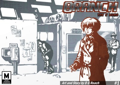 With an initial version of the cover I showed a friend which had Scratch on her own he told me it looked a little too barren and that I ought to capitalise on the sense sleaziness indicated by the posters next to the Treenet booth and have a couple in the back alley. Given my intention to disturb rather than titillate with this I may have pushed a little further than intended, it started out as a kiss/embrace but now looks somewhat more explicit.